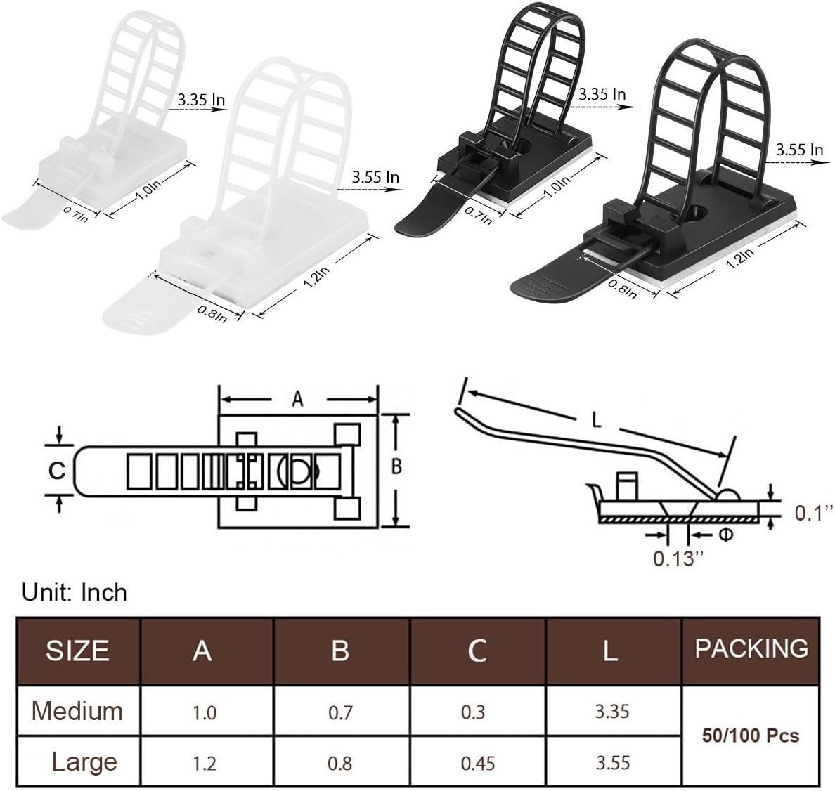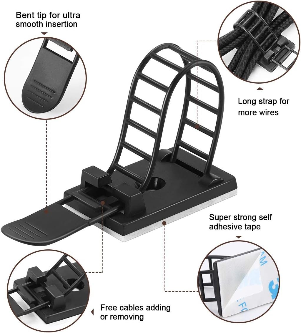 Specification: 50Pcs Adhesive Cable Management Clips with 50Pcs Zip Ties, Adjustable Nylon Cable Strap Ties Wire Clips Clamps Organizer with Strong Adhesive Tape, Extra Screw & Hole – 3.35 Inch Black