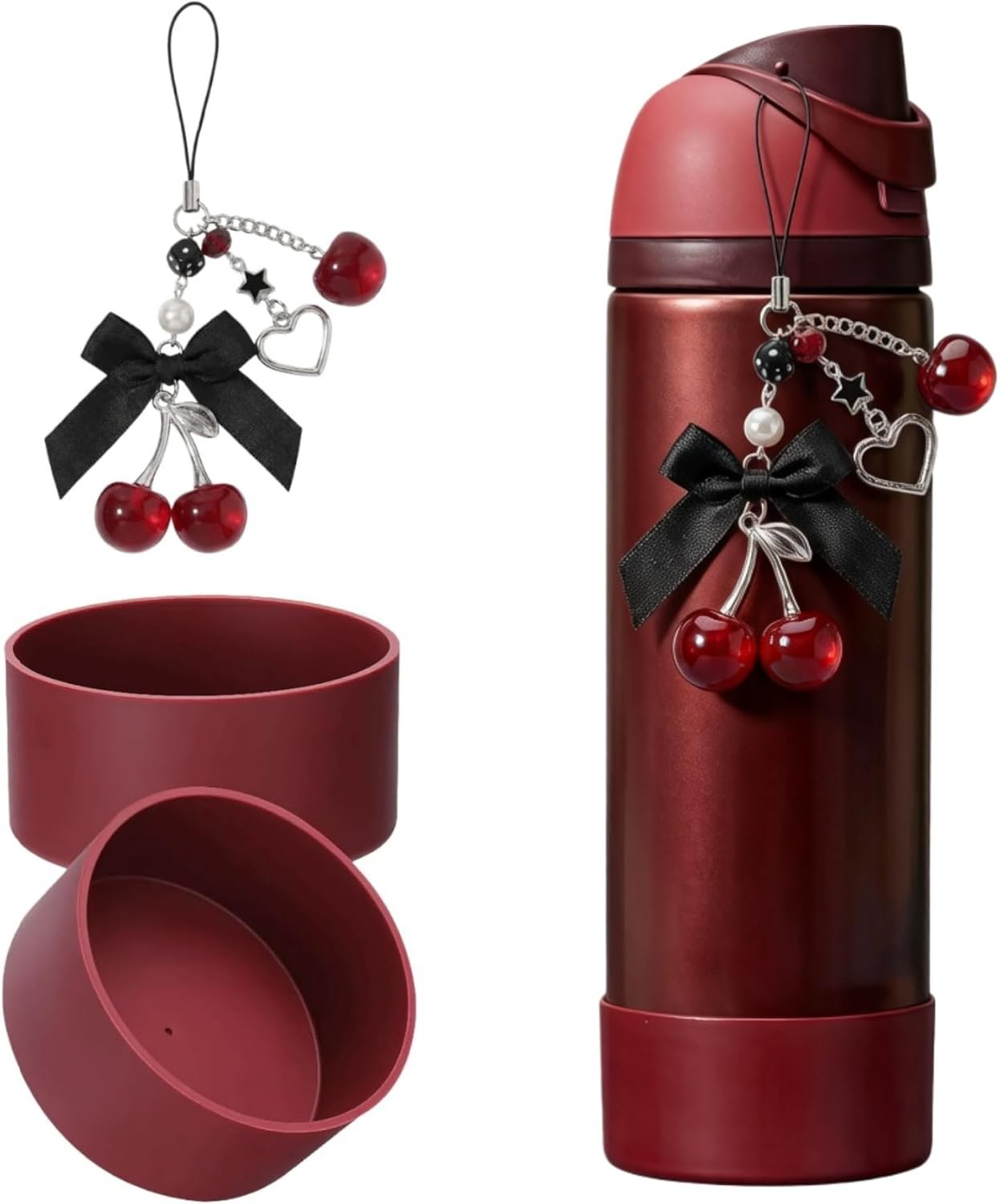 Trending Black Cherry Aesthetic:Draw inspiration from the viral social media trend. This set merges glossy cherry charms with a matte-finish boot, transforming your bottle into a standout piece of Perfect Water Bottles Decor.