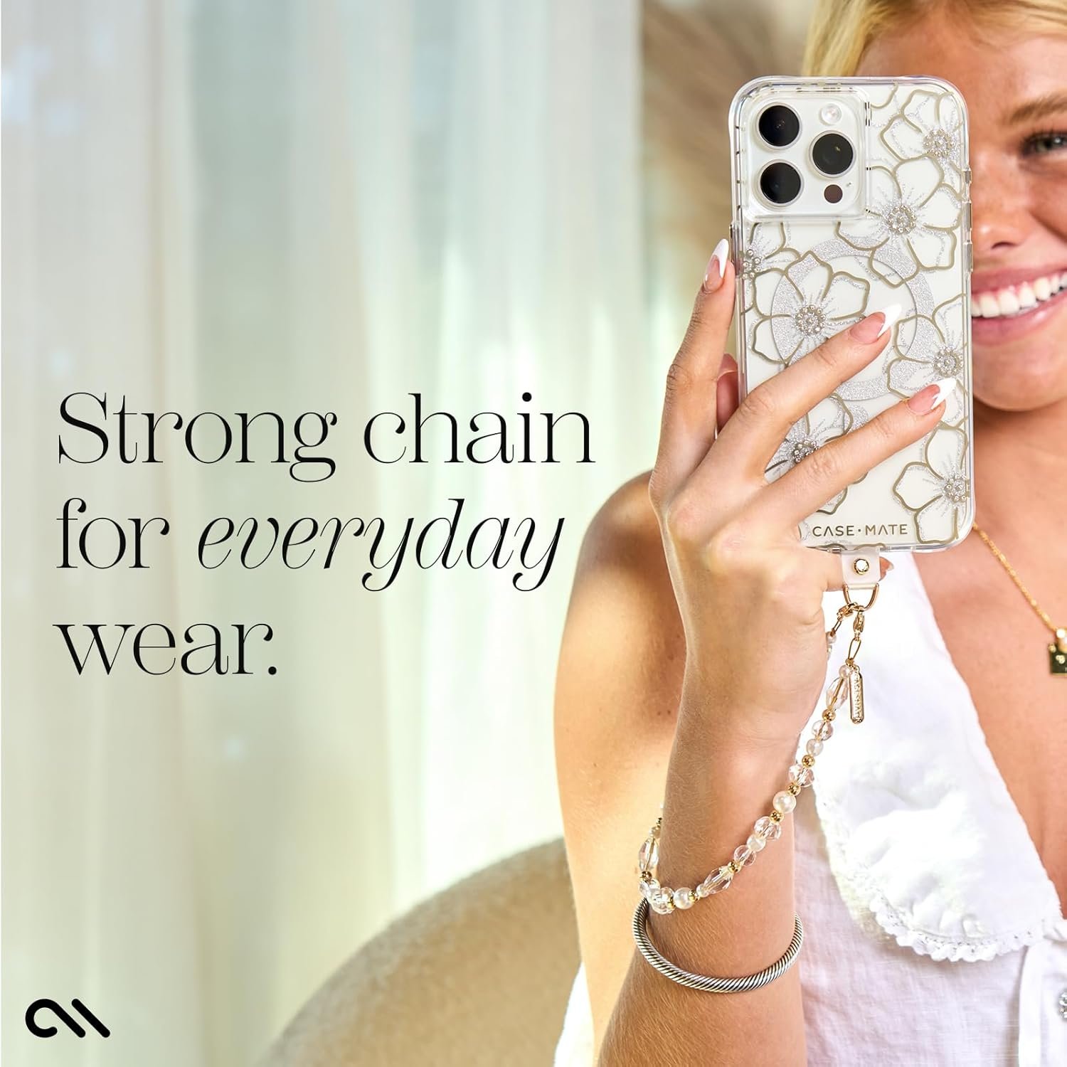 Go Hands-Free & Charge Seamlessly: Upgrade your phone’s aesthetic with Case-Mate’s beaded phone wrist strap. Designed for modern multitaskers, this iPhone 17 Pro Max lanyard provides hands-free convenience, ideal on busy days. What’s more, the iPhone keychain enables hassle-free charging without blocking the port, ensuring your phone stays powered up even with the wrist phone strap attached. Explore Case Mate’s pearl phone charm straps for phones – style & functionality in one sleek package.