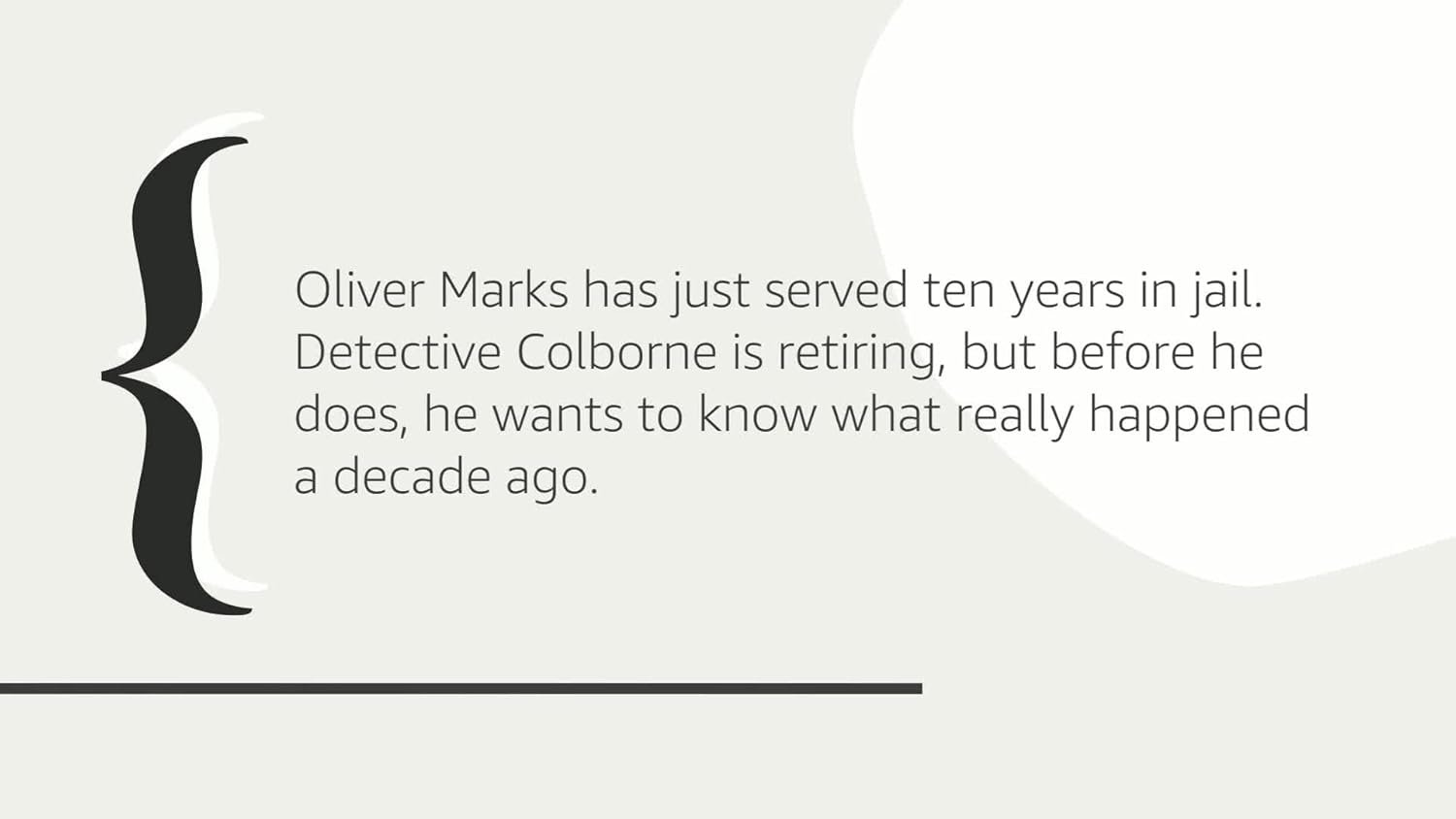 On the day Oliver Marks is released from jail, the man who put him there is waiting at the door. Detective Colborne wants to know the truth, and after ten years, Oliver is finally ready to tell it.