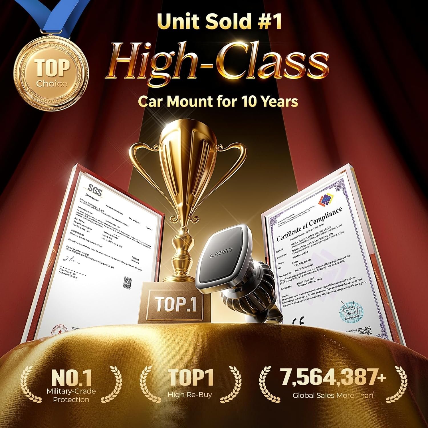 OFFICIAL CERTIFIED& WIDELY COMPATIBLE: LISEN Car Phone Holder is officially certified by SGS RoHS and SGS CP65, and has passed tests for magnetism, phone signal, hook stability and ingredient safety. The quality-controlled car mount is compatible with the following devices: Galaxy Note20 S25 S24 S23 S22 U, iPad Air 2 / Mini, and other smart phones and Mini Tablet 3 / Pro 9.7 and above. NOTE:IT CAN’T BE USED WITH MagSafe and iPhone 12 – 16! Must use a metal plates or it won’t work.