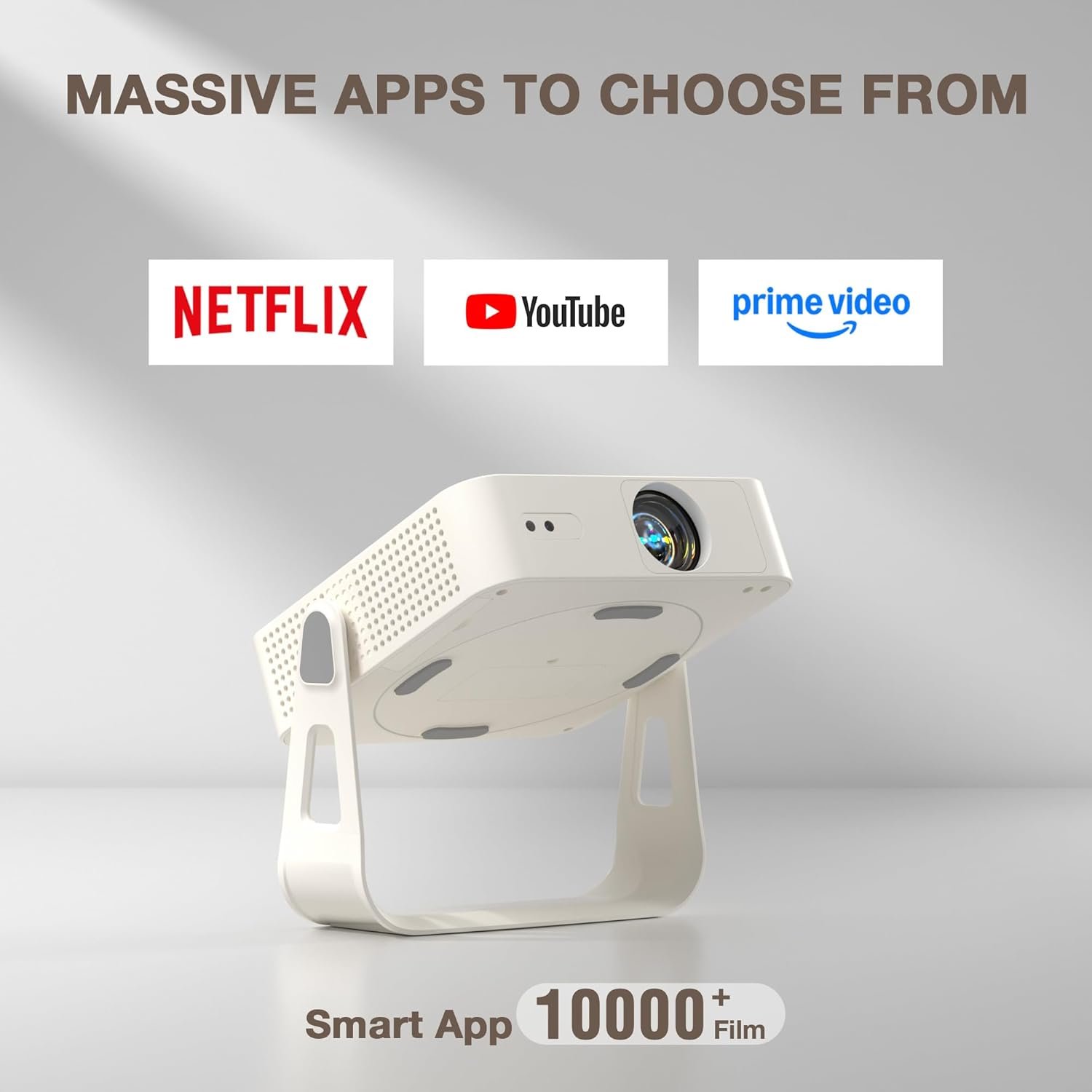 Specification: [Officially-Licensed App & Auto Focus]White Smart Mini Projector with WiFi and Bluetooth, XuanPad 4K Support Movie Projector, Portable Native 1080P Outdoor Projector with 360° Stand