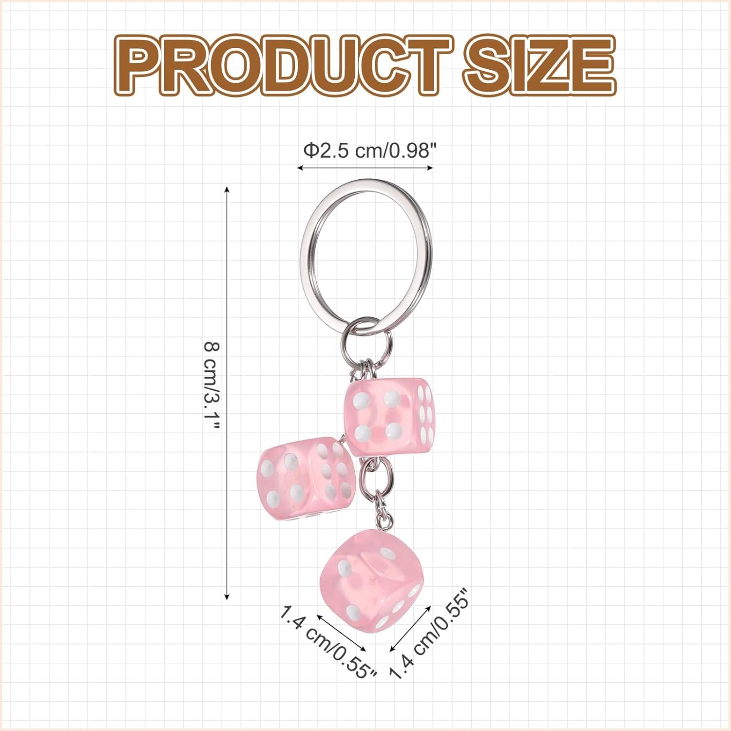 The use of the dice keychain is simple and direct. Just hang it on your keys, bags, or anything you want to decorate. Its keychain design is easy to install and remove, which is convenient for switching between different accessories.