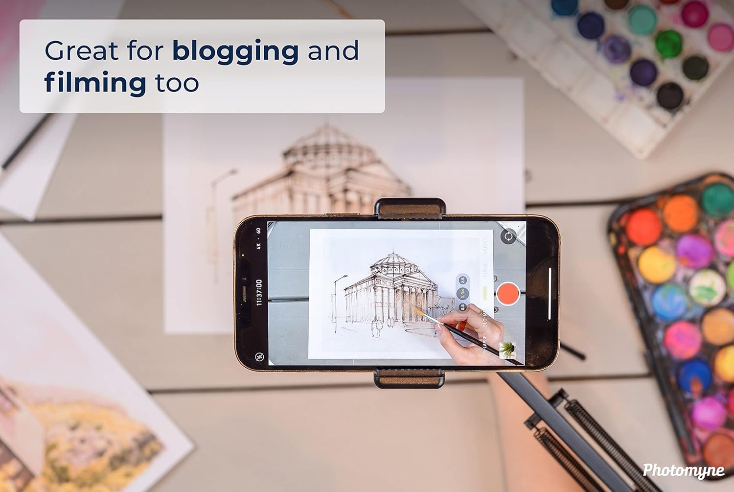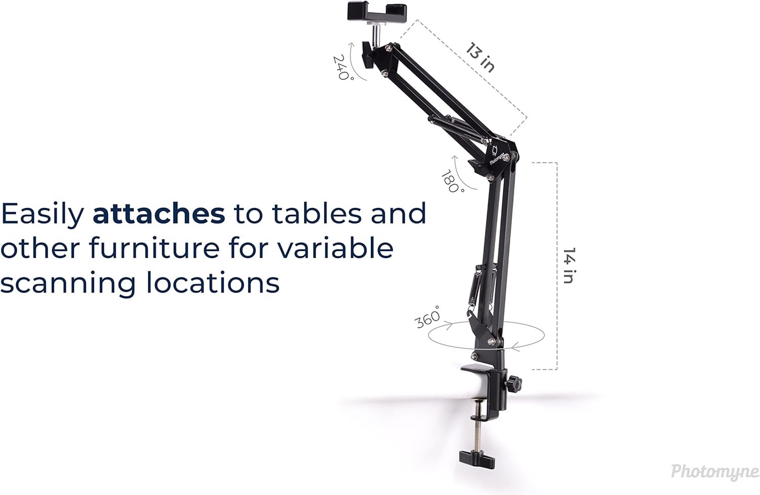 Specification: PHOTOMYNE Sturdy Flexible Phone Holder for Desk, Table, Office, Kitchen with Clamp for Photo Album Scanning, iPhone Holder for Desk- Black
