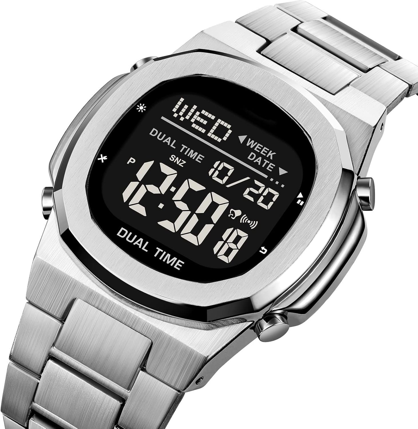 Reginald Men’s Multifunctional Electronic Watch Outdoor Sports Watch EL Light Large Digital Display Timing Stainless Steel Watch