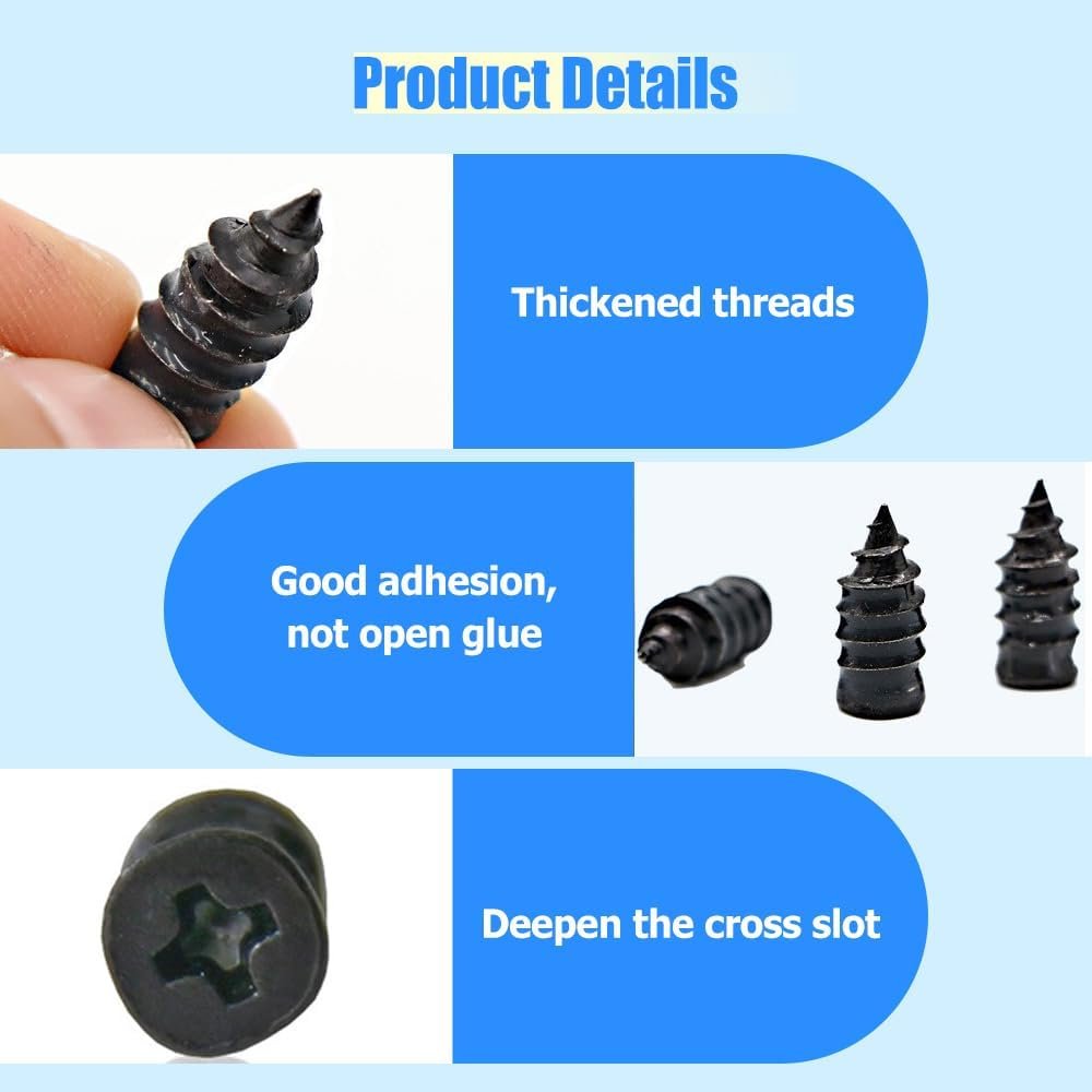 Specification: Tire Repair Nails Kit with 2 Sizes, Screw in Tire Repair Plugs with Box and Screwdriver, Fast Self-Service Tire Repair Tools (10Set)