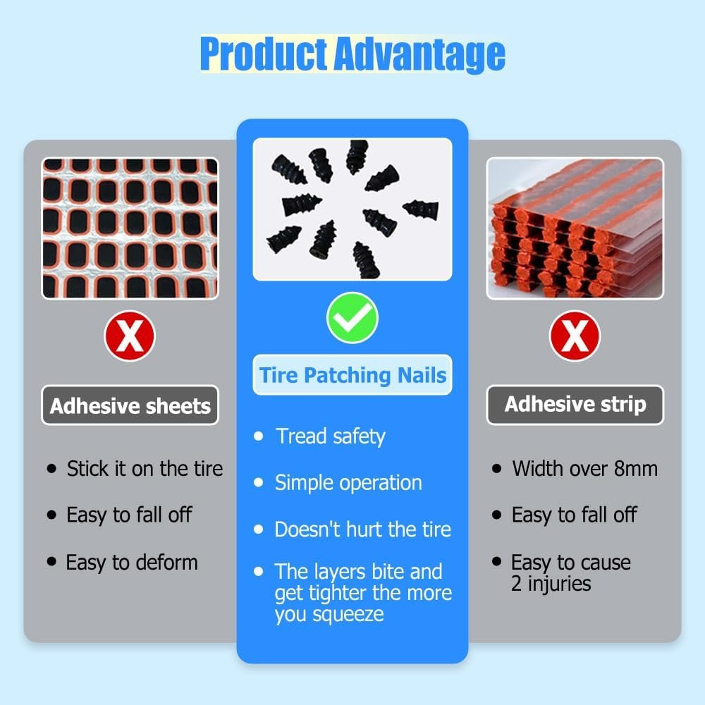 【Effortless DIY Tire Repair】Say goodbye to complicated fixes! Our tire repair nails are designed for quick, Tool-free insertion directly into the puncture. No need to remove the tire from the rim—anyone can achieve a secure, Professional-grade repair in minutes.