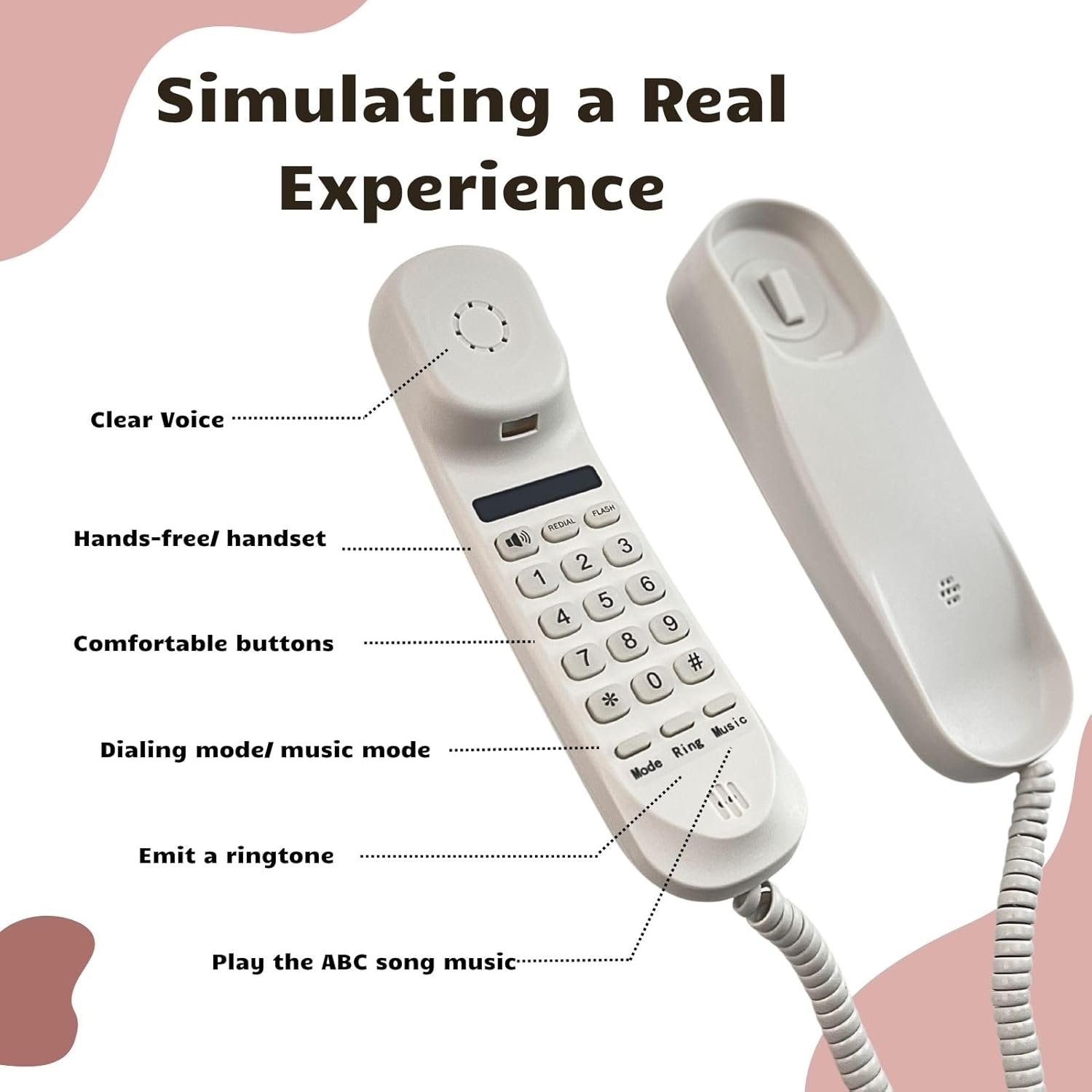 Additional Fun Features: The phone toy comes with a ring emission for added realism and a flash stop feature for enhanced interaction. Thanks to the replay key, both modes come with a fun repeating feature.